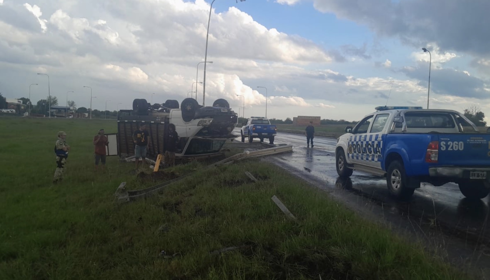 Volcó un utilitario en la Autovía 14 tras atravesar un espejo de agua