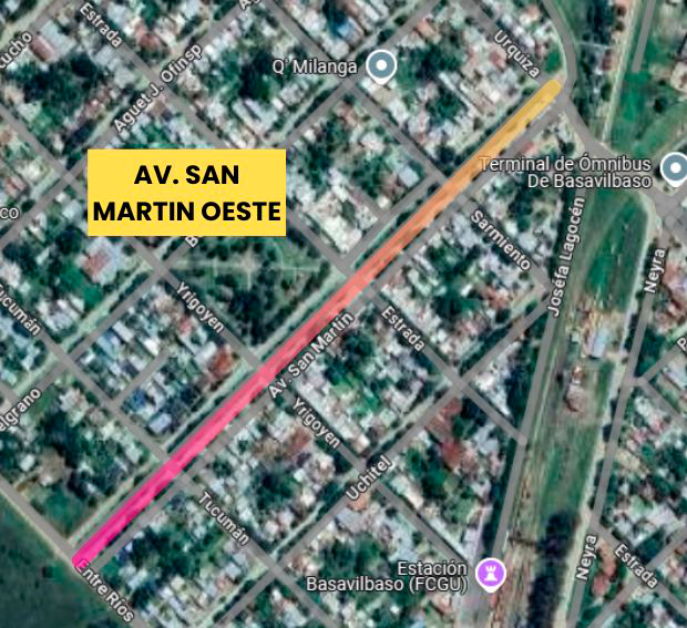 🌱 Avenida San Martín Oeste (entre Avenida Urquiza hasta calle Entre Ríos)