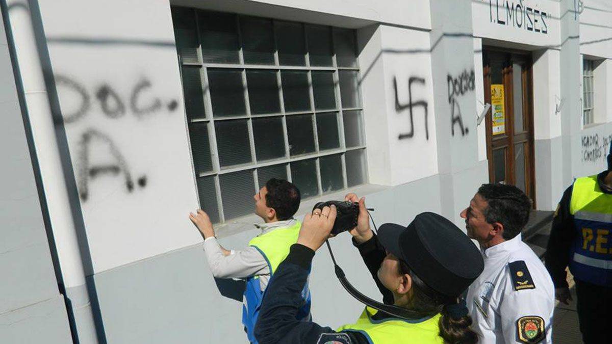 Las pintadas antisemitas realizadas en la Sinagoga Tfilá L’Moisés y en la sede de la Asociación Israelita fueron denunciadas por dirigentes de la Asociación, pero -como en reiteradas oportunidades el Dr. Arcusin lo cuestionó- no se constituyeron en querellantes.