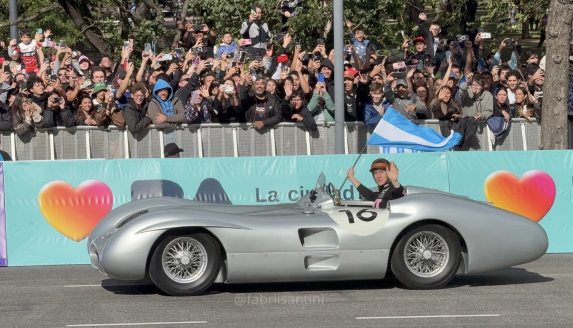 Sin embargo, el momento más conmovedor de la jornada llegó minutos después, cuando el piloto se subió a una réplica del mítico Mercedes-Benz W196, la inolvidable Flecha de Plata con la que Juan Manuel Fangio conquistó los campeonatos mundiales de 1954 y 1955. La escena tuvo un valor simbólico enorme: el pasado glorioso del automovilismo argentino y la gran esperanza de su futuro compartiendo el mismo asfalto ante una marea humana.