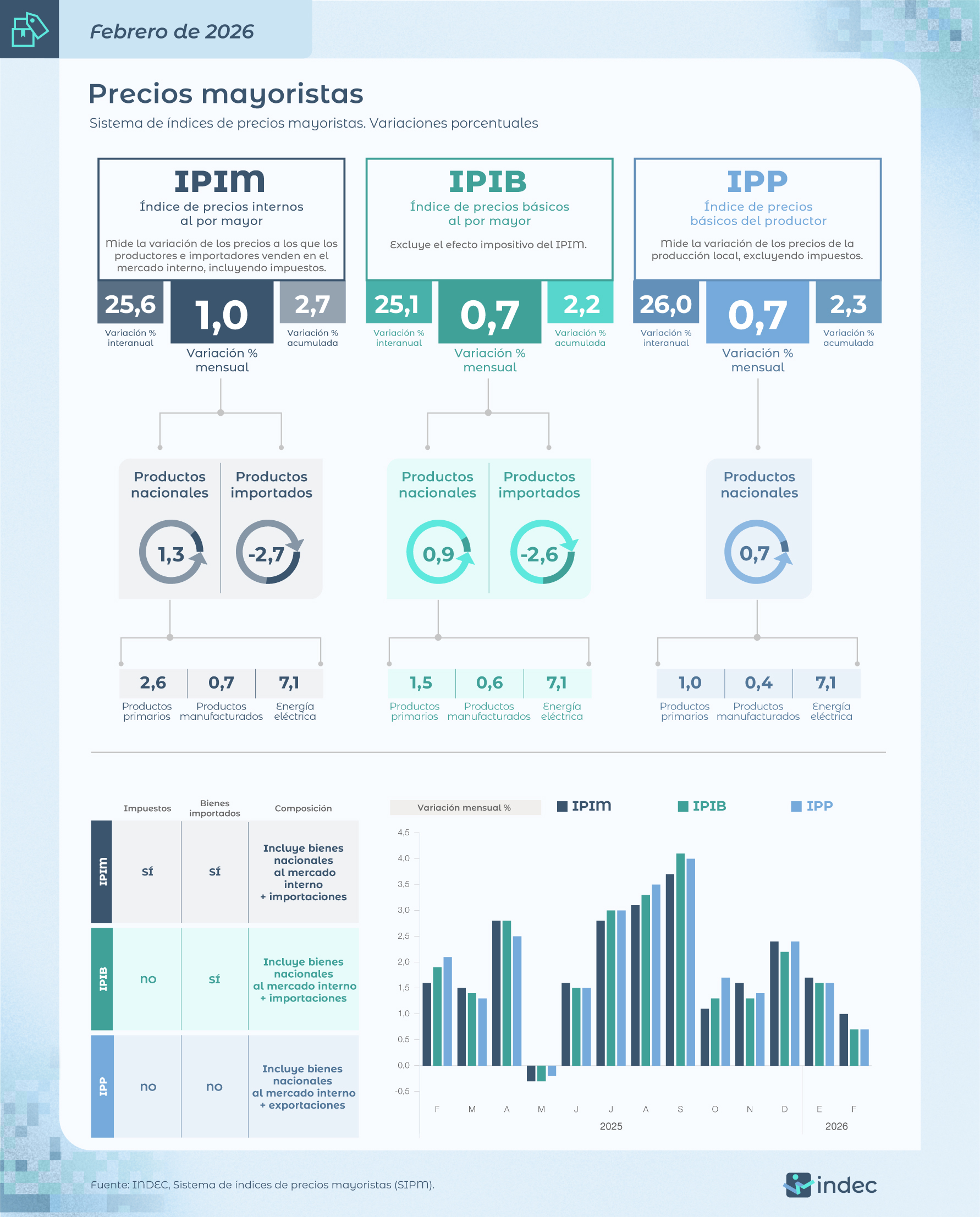 La inflación mayorista de febrero fue del 1%