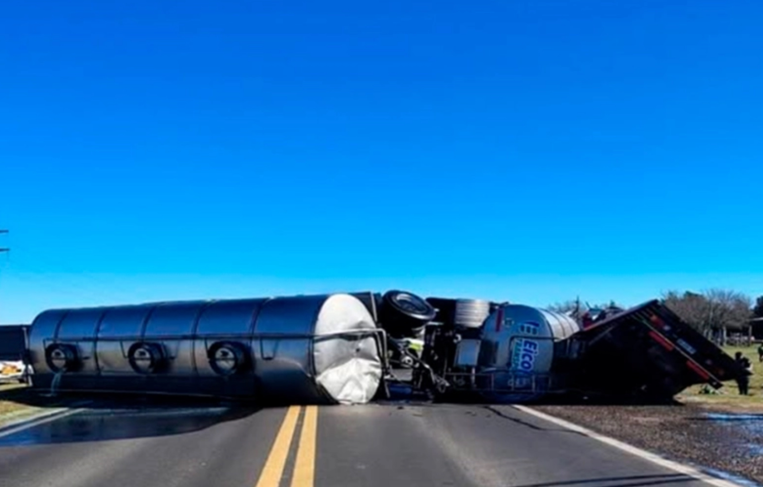 Alrededor de las 11.30, a la altura del kilómetro 350 de la Ruta Nacional 12, frente al parque industrial de Nogoyá, un camión cisterna lechero que se dirigía hacia esa ciudad colisionó de frente con un camión de auxilio que circulaba en dirección a Hernández.