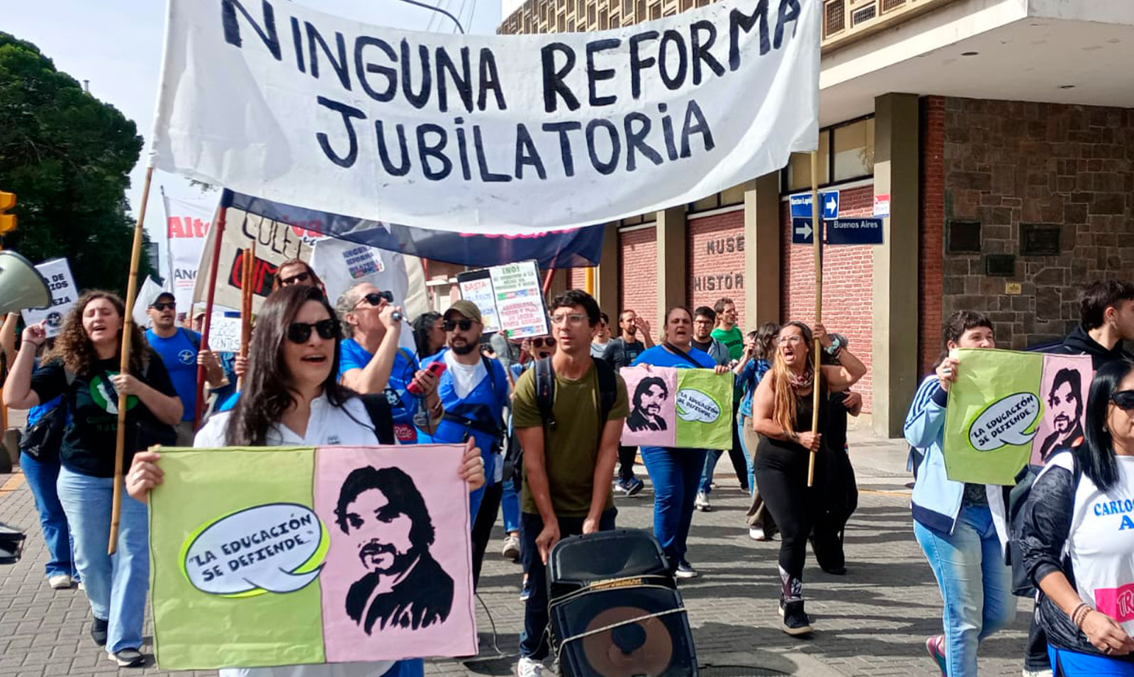 La movilización recorrió calles céntricas, pasó por la Caja de Jubilaciones y finalizó frente a Casa de Gobierno, en una jornada marcada por la fuerte presencia sindical y el rechazo a la reforma previsional.