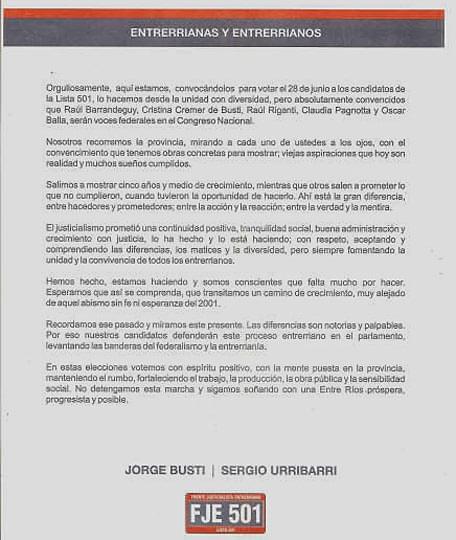 Artusi: "Sólo votando a la Lista 504 se podrá poner