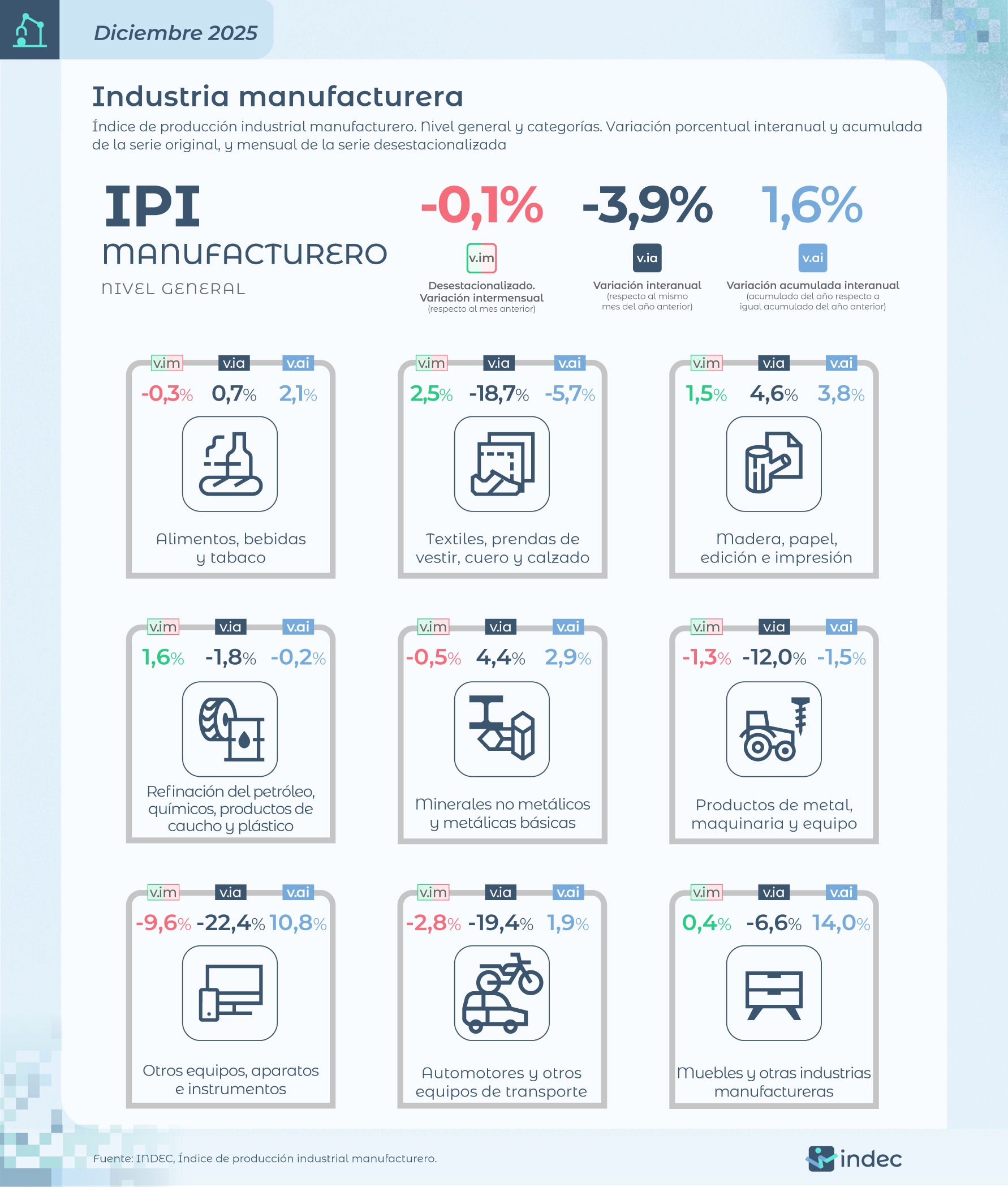 La industria cayó en diciembre, pero cerró el 2025 con una suba