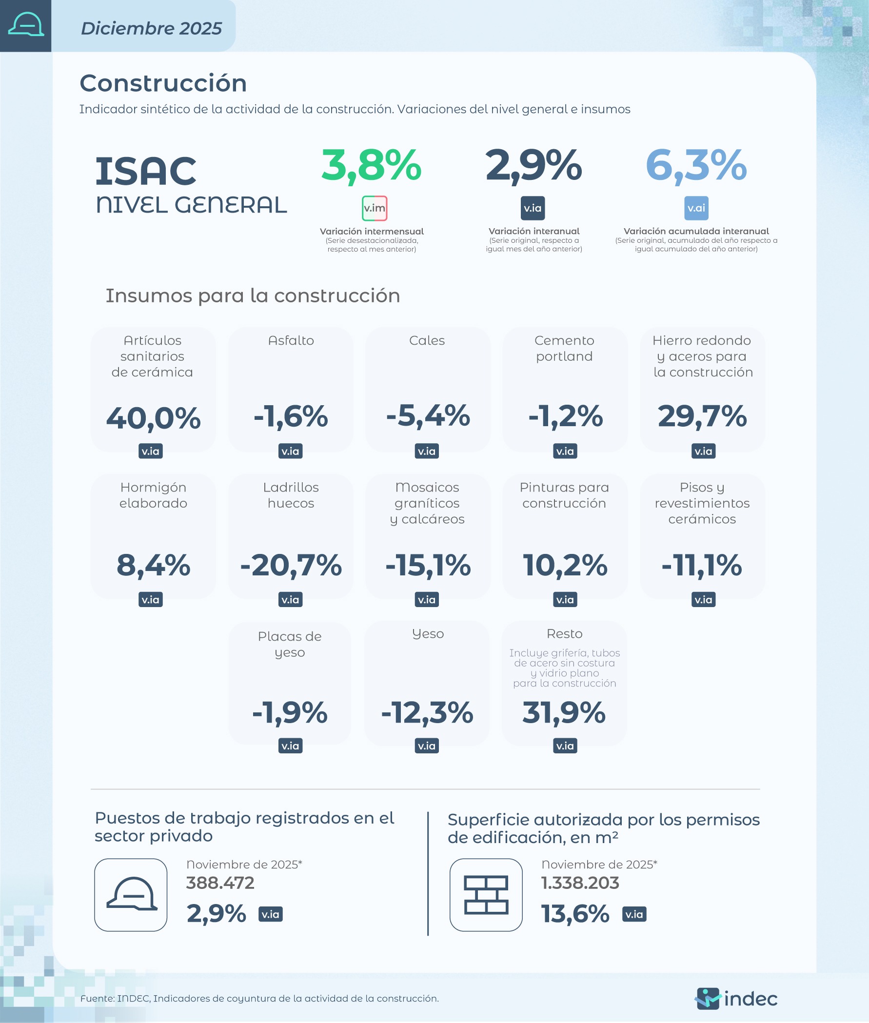 El sector de la construcción volvió a terreno positivo en diciembre