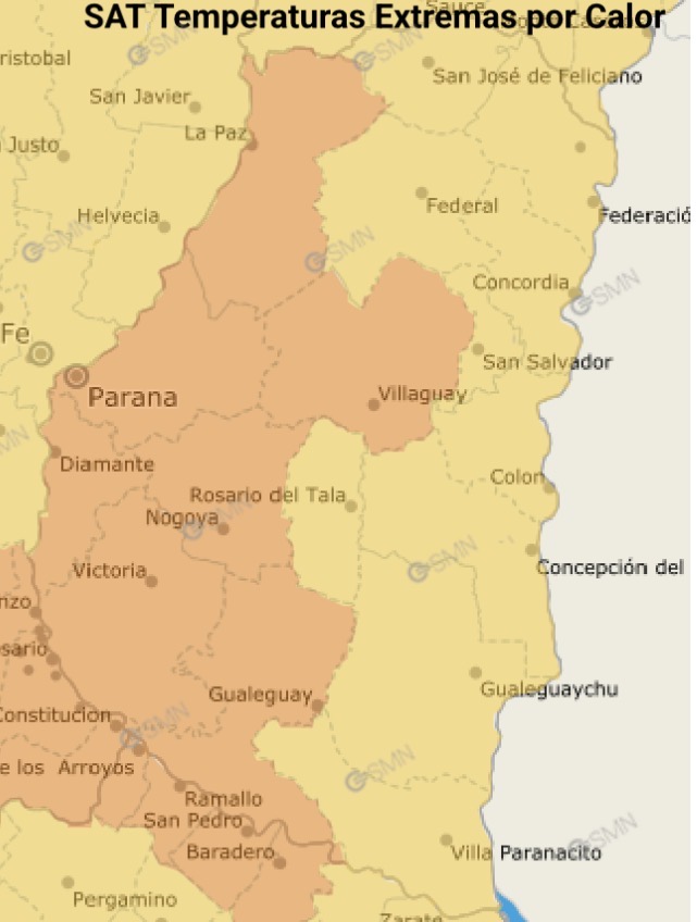 El Servicio Meteorológico Nacional (SMN) renovó la alerta por altas temperaturas para toda la provincia de Entre Ríos y advirtió que las condiciones climáticas seguirán siendo extremas durante los próximos días.