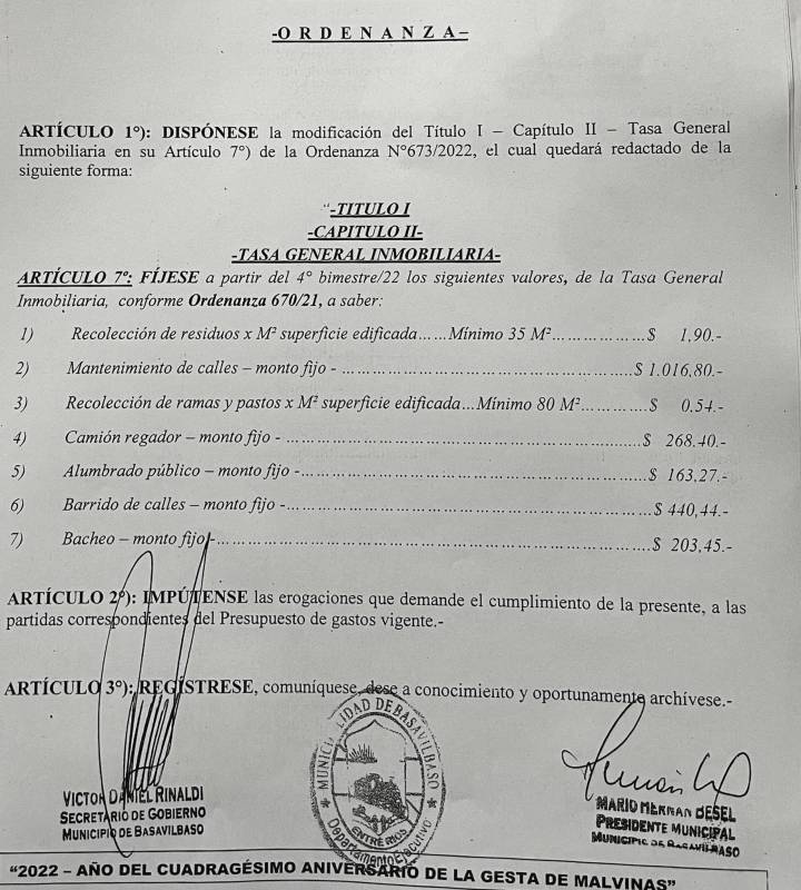 Con el voto del Bloque oficialista el DEM logró en la sesión de este jueves del HCD que el legislativo apoye el cambio de la Ordenanza 673/2022, y que permita un aumento, a partir del cuarto bimestre del año, de la Tasa General Inmobiliaria.