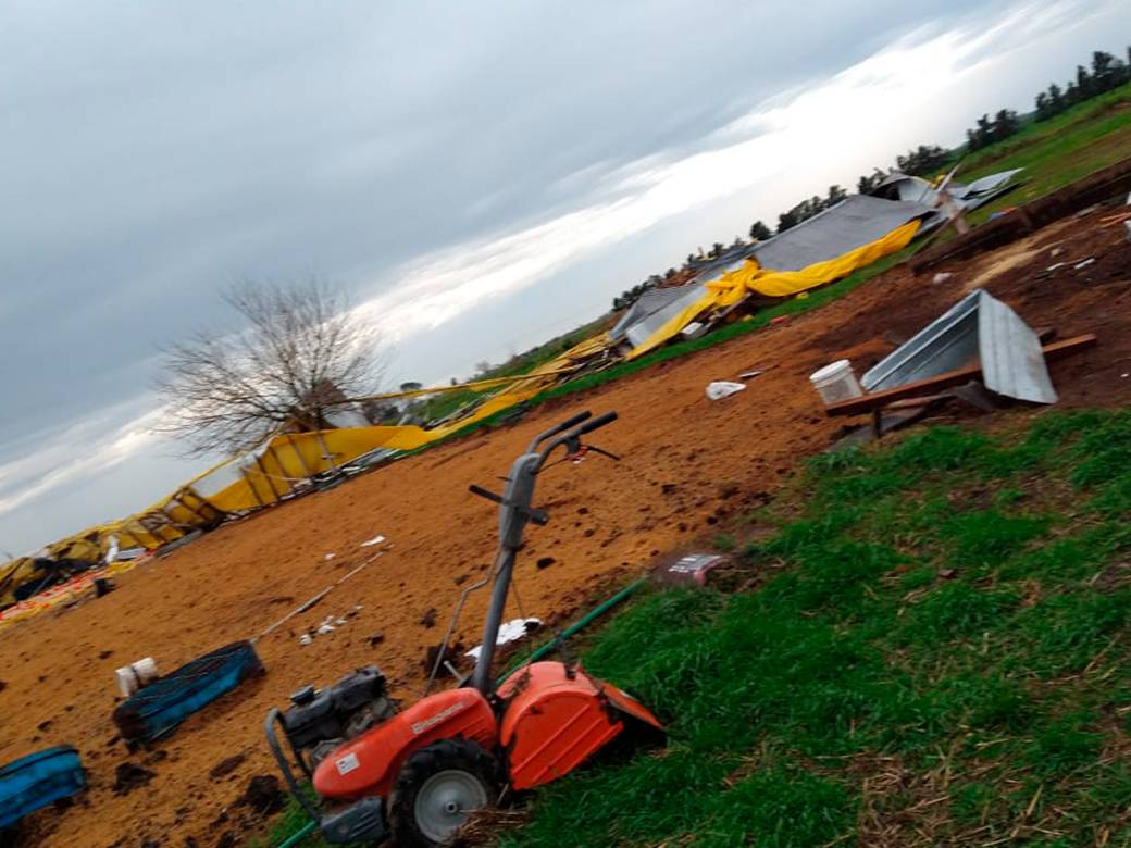 Unos cinco kilómetros más al Norte otra granja avícola resultó destruida por la virulencia del viento, allí según pudo saber FM RIEL del galpón no quedó nada en pie, y a varios metros a la redonda se podían apreciar rasgos de lo que había sido su estructura y techo.
