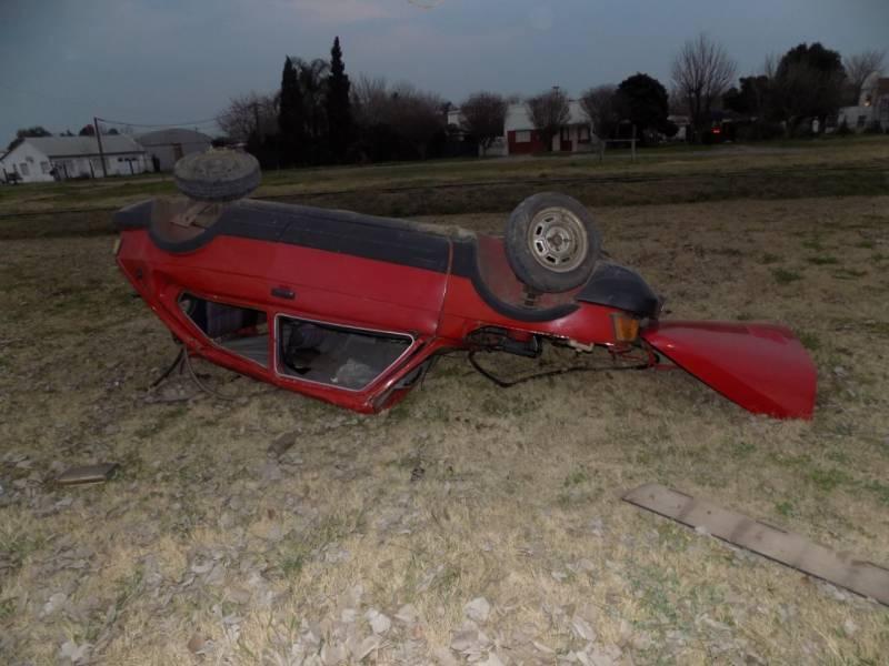 Por causas que se tratan de establecer, y presumiblemente combinado con un exceso de velosidad, el Fiat Vivace descontrolado dio varios tumbos y quedó con tres de sus ruedas (la cuarta la perdió) "mirando" al cielo.