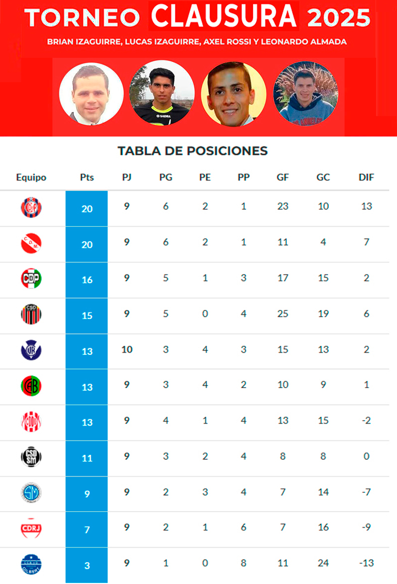 Las lluvias del primer fin de semana de octubre obligaron a postergar la décima jornada del Torneo Clausura 2025 de la Liga Regional Basavilbaso, certamen que rinde homenaje a “Lucas Izaguirre, Brian Izaguirre, Axel Rossi y Leonardo Almada”, víctimas de un siniestro vial.