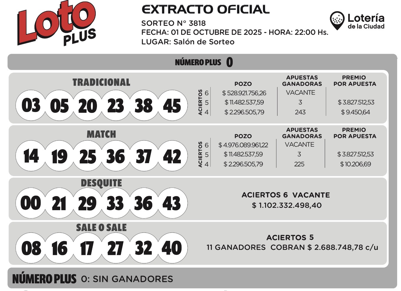 Sociedad | Aquí en detalle los sorteos del Loto Plus, y una nueva jugada supermillonaria de la lotería de la Ciudad de Buenos Aires.