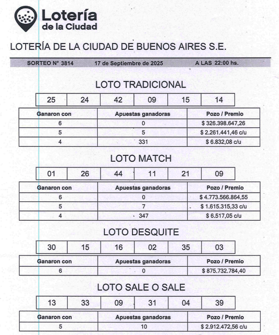 Sociedad | Aquí en detalle los sorteos del Loto Plus, y una nueva jugada supermillonaria de la lotería de la Ciudad de Buenos Aires.
