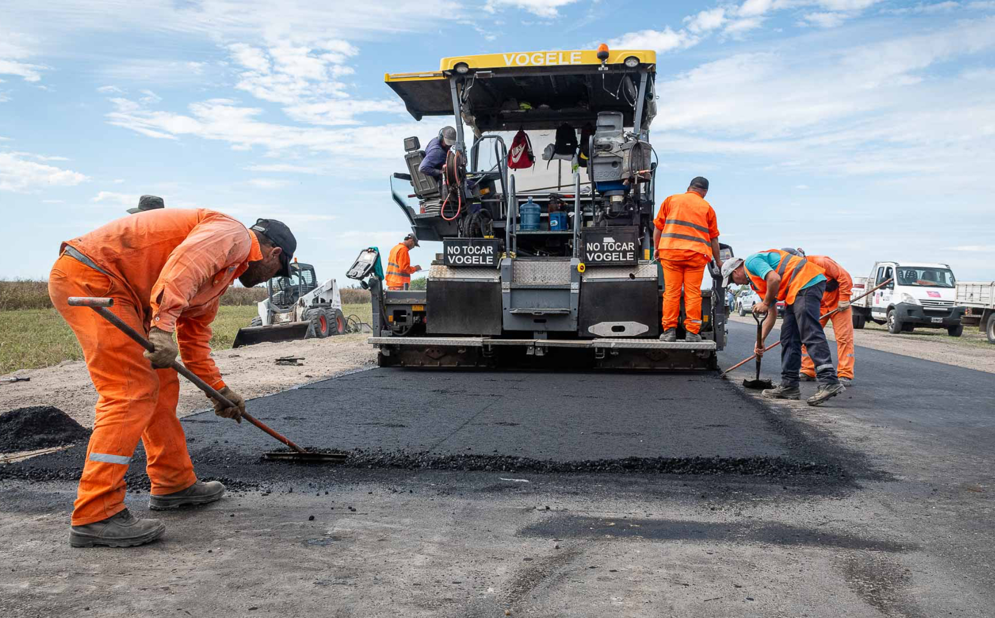 En el tramo en ejecución, se llevan a cabo tareas de bacheo profundo con cemento y bacheo superficial con mezcla asfáltica, particularmente en la zona de Basavilbaso.