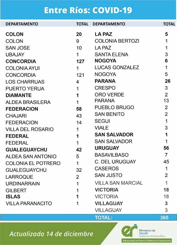 El área de Vigilancia Epidemiológica del Ministerio de Salud, confirmó que en Entre Ríos este lunes se registraron 365 nuevos casos de coronavirus.