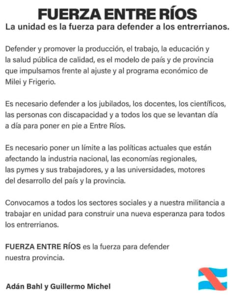 El exintendente de Paraná afirmó que la propuesta es “una clara señal hacia la sociedad” y expresó: “Queremos sostener viva la llama de nuestro espacio, resistir este tremendo ajuste y construir una nueva esperanza en donde el esfuerzo valga y nadie se quede atrás”.