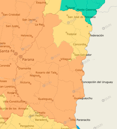 Alerta Amarilla por tormentas para toda la provincia de Entre Ríos